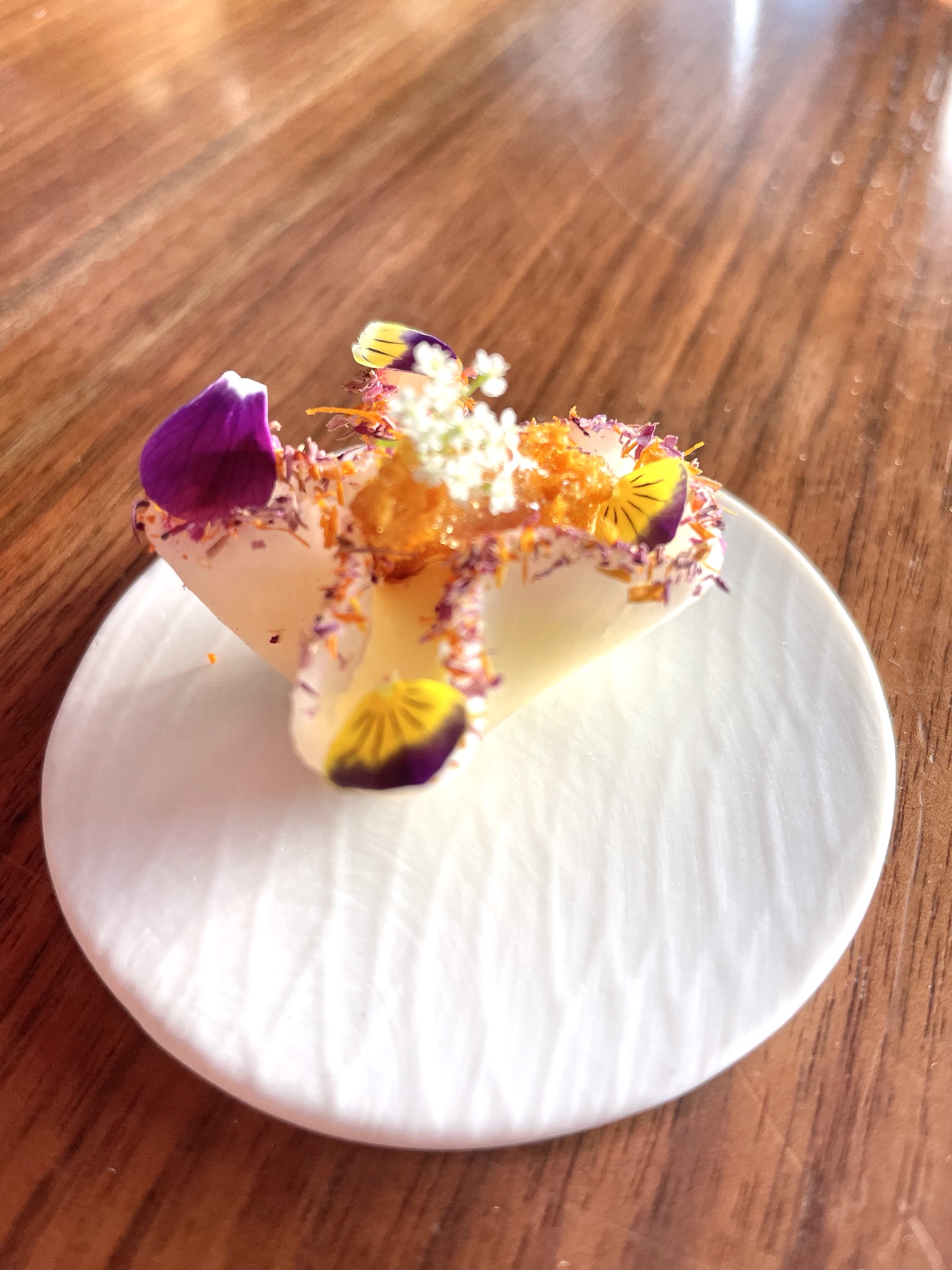Un mot sur les vins et le service. Sergio Calderon est un directeur de salle et sommelier enchanteur par sa connaissance, sa gentillesse, sa spontanéité, et son humour. Laissez le vous guider et vous aurez la garantie d’accords raisonnables et parfaits. L’équipe dans son ensemble est à l’image de la maison pleine d’humilité, d’humanisme, et de prévenance. Un mot sur la présence féminine chez les Bras. Gilbert Trigano fondateur du Clubmed m’avait dit que sans sa femme il n’aurait sans doute pas réaliser le Club. Il surnomait affectueusement sa femme « l’ombre indispensable ». Chez les Bras Ginette puis aujourd’hui Véronique sont bien plus que des ombres au sens propre du terme, mais des chefs d’entreprise et des formatrices de haut niveau, et sans elles la maison Bras n’aurait pas été tout à fait ce qu’elle est devenue. Quelle gentillesse, et après tant de visites je me dis que des personnes aussi sincères et attentionnées ne peuvent qu’avoir un coeur lumineux.