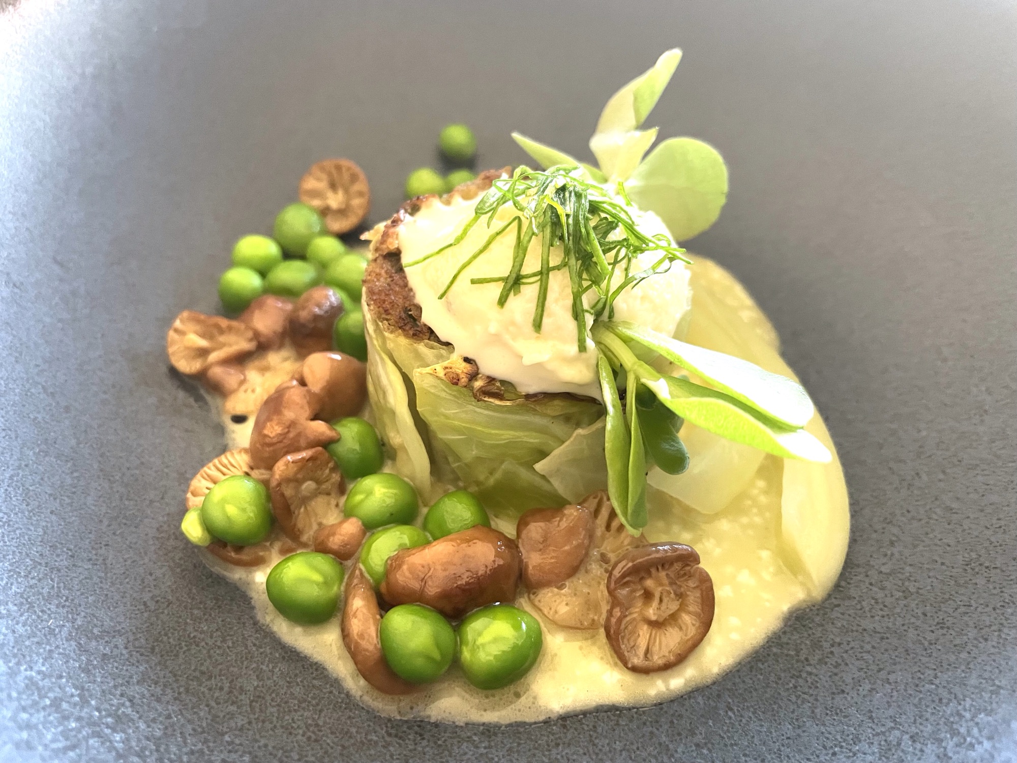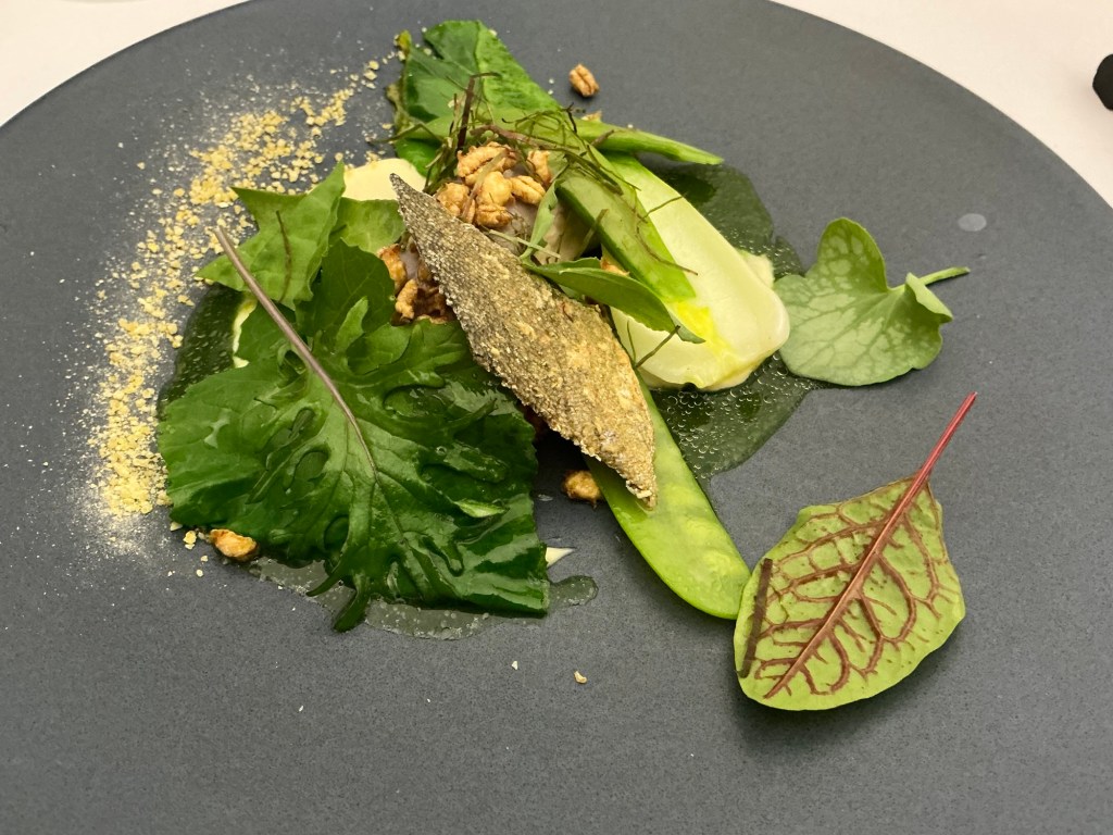 Le gargouillou de jeunes légumes, herbes & graines germées, biscuit au vieux Rodez & oléagineux