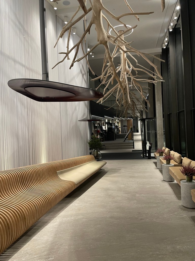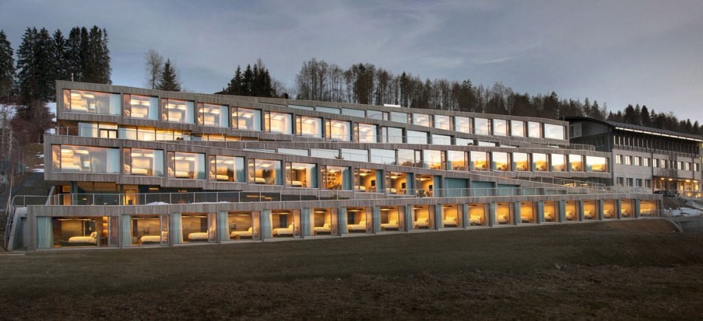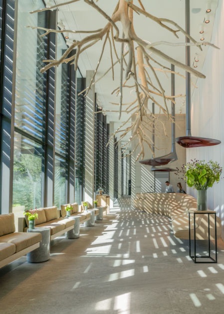 Le bâtiment dessiné par Wilmotte Peignoir, serviettes, chaussures sont fournis.
