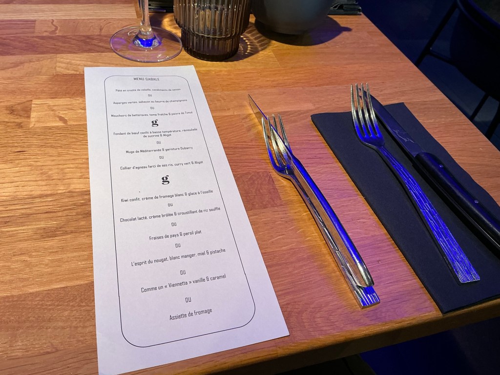 Nous avions commandé des couteaux Plume avec manche orange car vous pouviez customiser votre couteau au Vent d’Aubrac. Nous avions rencontré Jean- Michel Cayron un des trois MOF et avions pu constaté à quel point il a sans doute été élevé avec humilité dans la passion de l’artisanat. Une belle rencontre.