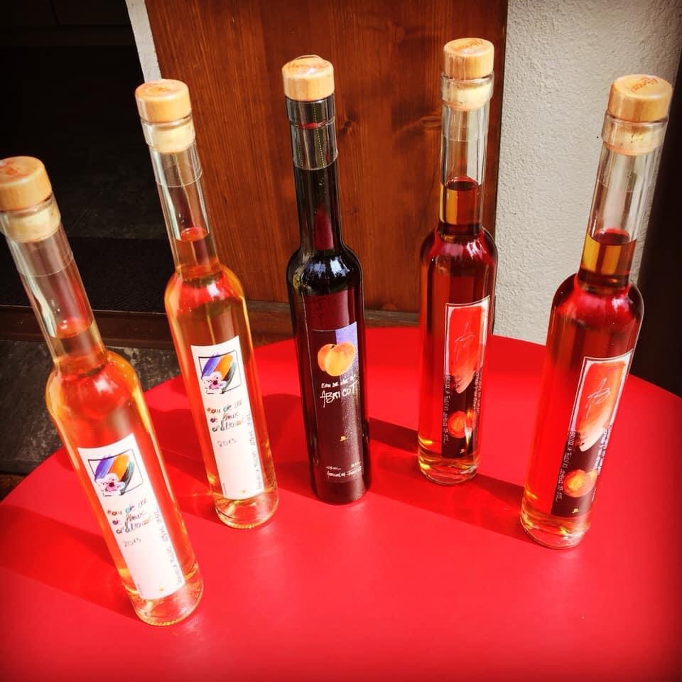 L’eau-de-vie de Fleur d’abricot serait notre premier choix chez Abricool. Véronique Mermoud fait macérer dans une eau de vie d’abricot ces fleurs printanières qui apporteront cette belle couleur dorée à l’eau-de-vie à cause des pollens. Un parfum de fleur offre un magnifique mélange végétal en bouche. Un grand flacon à découvrir qui vous fera plonger dans un verger d’abricotiers en fleurs. Mais attention si vous recherchez surtout un goût de fruit prononcé il faudra plutôt choisir l’eau-de-vie d’abricot simple ou celui élevé en barrique. Ces dernières iront très bien en accord avec un sorbet plein fruit abricot comme proposé à l’excellent Café du Cerf à Rougemont (VD).