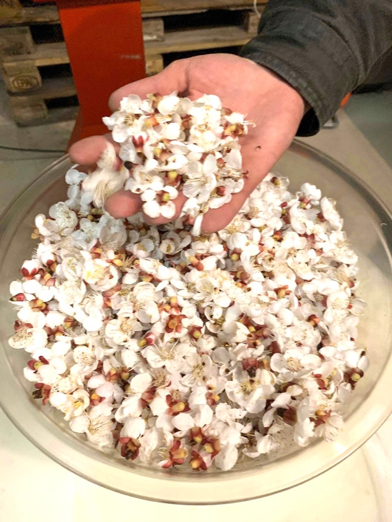 Veronique Mermoud distille beaucoup de fruits mais aujourd’hui nous resterons sur l’abricot. L’abricot est le prince du verger valaisan suisse. Fruit emblématique en particulier la qualité Luizet sélectionnée par Abricool, il possède une belle coloration rouge orangée, une peau velouté, un goût sucré et acidulé.