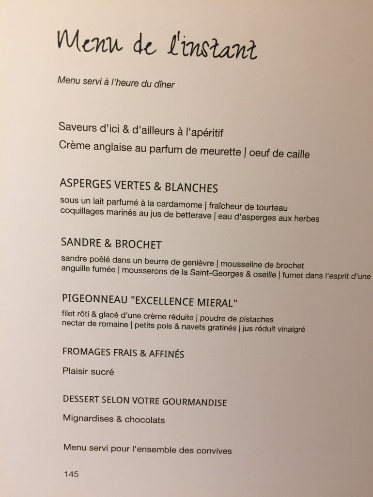 Comme dit Stéphanie ma fidèle et précieuse partenaire d’expérience épicurienne, deux repas nous ont la première fois étonnés puis fait méditer sur leurs contenus. Chez Bras en 1997 et chez Alexandre Mazzia en 2014.