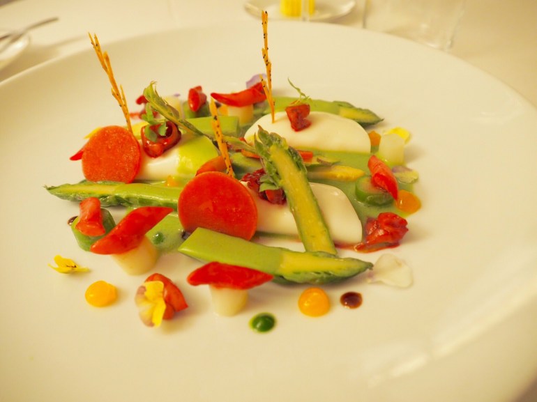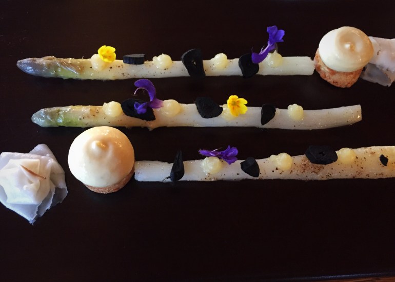Les asperges nous ont étonnés par un mélange réussi terre et mer. C’est frais et les couleurs éveillent les papilles.