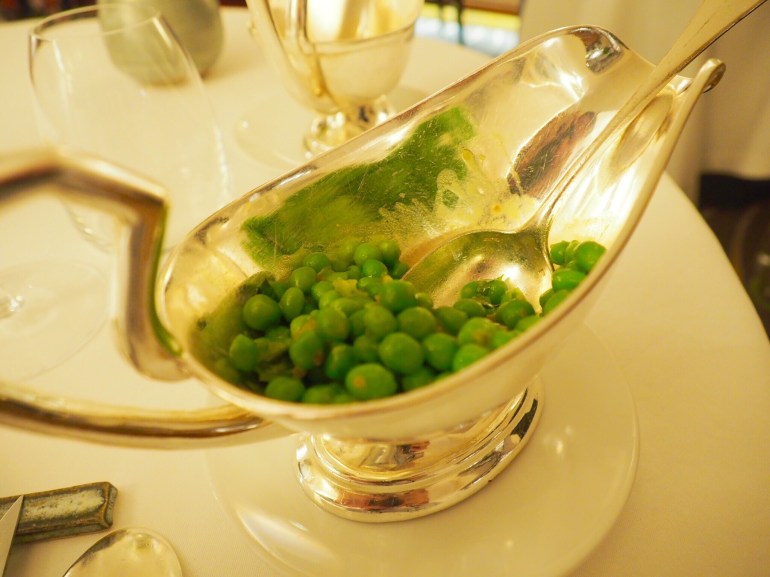 Le pigonneau Miéral rôti et glacé est juste fondant avec ce jus réduit vinaigré. Et que dire de ces petits pois si simples, si bons. Un cadeau de la nature.