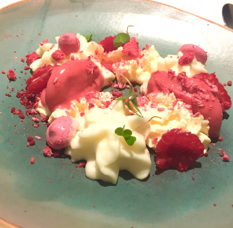 Le dessert signature, un vacherin frambroise 50 nuances de meringues, soit le nombre de pétales. Quel travail minutieux