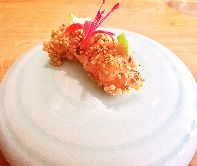 Un feu d’artifice végétal et de poissons crus qui vient après les mises en bouche dont cette surprenante olive farcie et cette mousse au Campari. Cela nous a fait penser à un autre artiste ami et belle âme Alexandre Mazzia de chez AM** à Marseille. Quel début exceptionnel. Choux fleurs, brocolis, artichauts. Je laisse parler quelques photos.