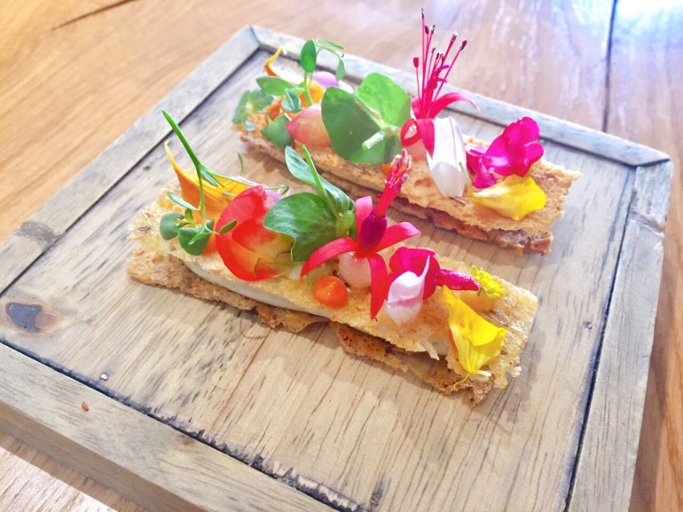 Pauline et Christophe Billau ont eu un certain courage de reprendre cette auberge qu’ils ont rénové avec un goût en adéquation avec la nature. Courage car pas facile de faire venir au col des produits et du personnel. Heureusement le chef a une partie de son marché juste devant lui pour ramasser champignons, herbes et fleurs qui rejoindront vos assiettes. Anciens du domaine de Châteauvieux près de Genève ils ont obtenus un macaron Michelin mérité. Les menus commencent à 49€ auquel vous pouvez rajouter des plats sans monter l’addition en altitude. Voici notre dîner en photos: